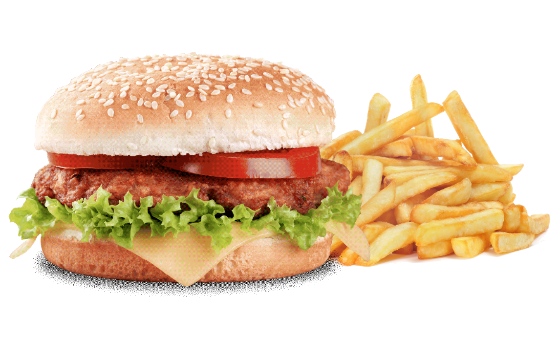 Lechuga, tomate, cebolla, queso y tocino. 100gr.